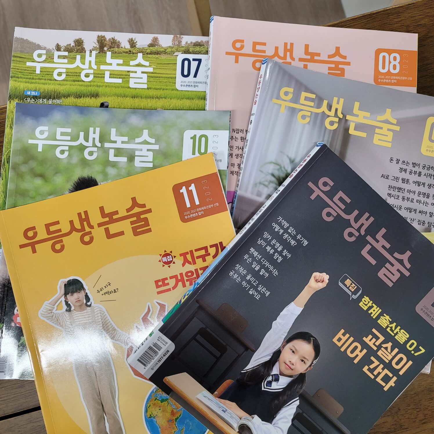 천재교육에서 나온 '우등생 논술'을 1년간 구독하여 아이들과 잡지의 내용에 대해 서로 이야기하며 1년을 보내었는데요. 우등생 논술은 요즘 나오는 뉴스에 대해서 어린이의 눈높이에 대해 잘 풀어서 이야기해 주고, 다른 나라의 여행기나 직업에 대한 이야기, 요즘 중요한 이슈가 되는 이야기에 대해서 심층적으로 토론할 수 있도록 전반적인 내용이 매우 좋았습니다.