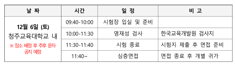 먼저 가장 중요한 것은 입실시간 엄수입니다. 공고문에는 9시 40분에서 10시까지 입실이라 나와 있지만
