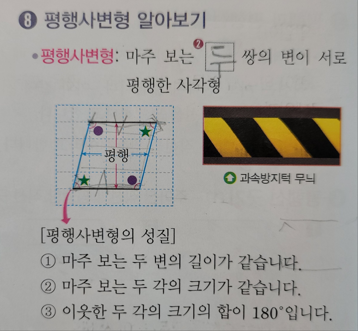 평행사변형 : 마주 보는 (두) 쌍의 변이 서로 평행한 사각형